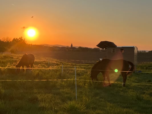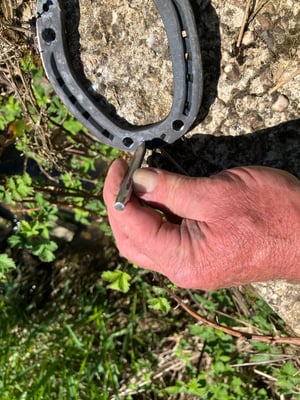 Ich hatte eine gute Fahrt, viele kleine Strassen. Mein Ablauf, wenn ich auf einen Platz komme, dwelcher für alle passt: Ich spanne die Pferde aus, stelle die Weide auf, gebe Wasser und lasse sie grasen. Nach ca. 2 Stunden fangen die Pferde an zu dösen. Meine Gelegenheit die Pferde zu putzen und zu kontrollieren, ganzer Körper, Beine, Sehnen, ob warme Stellen sind, sowie die Hufe. Oh Schreck, Eisen gebrochen. Nun geht es an die Arbeit. Reserve Eisen und Beschlagszeug ausgraben. Ich gab noch zwei Hartmetallstifte. Peter Rindlisbacher hat die Eisen perfekt angepasst. Ich habe es an der Brückenmauer noch etwas weiter gemacht und nun passt es perfekt. Aufnageln und den Abend geniessen!
