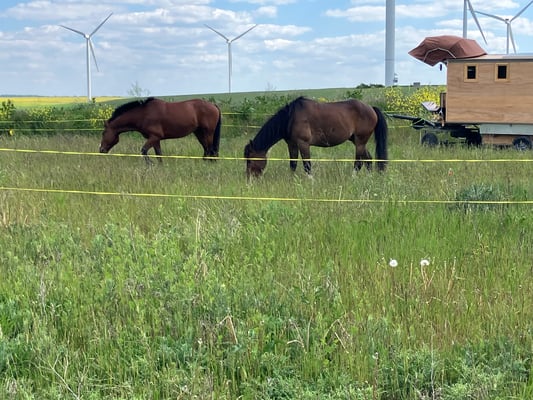In dieser Gegend von Hirson ist es sehr hügelig. Kleine Strassen sind angenehm, doch beim Kreuzen mit Lastwagen und Traktoren muss ich fast in den Strassengraben. Zwischendurch habe ich grosse Steigungen wo die Pferde alles geben müssen. Man kann es in den Bildern nicht sehen, es gibt viel Viehwirtschaft. Alles ist eingezäunt, daher finde ich nicht mehr so viele Übernachtungmöglichkeiten mit viel gutem Gras und windgeschützt. Die Temperaturen varieren die letzten Tage am Morgen zwischen 4 bis 8C, am Nachmittag 16 bis 22C, aber der Wind ist sehr stark.
