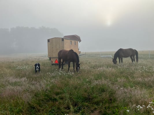 Die letzte Nacht vor Fintel fanden wir einen Platz mit einer grossen Eiche in der Weide. Am Morgen wartete ich auf Rüdiger, der mich zu sich nach Hause begleitetet. Elino nutzte die Gelegenheit um mit mir zu schmüsele!